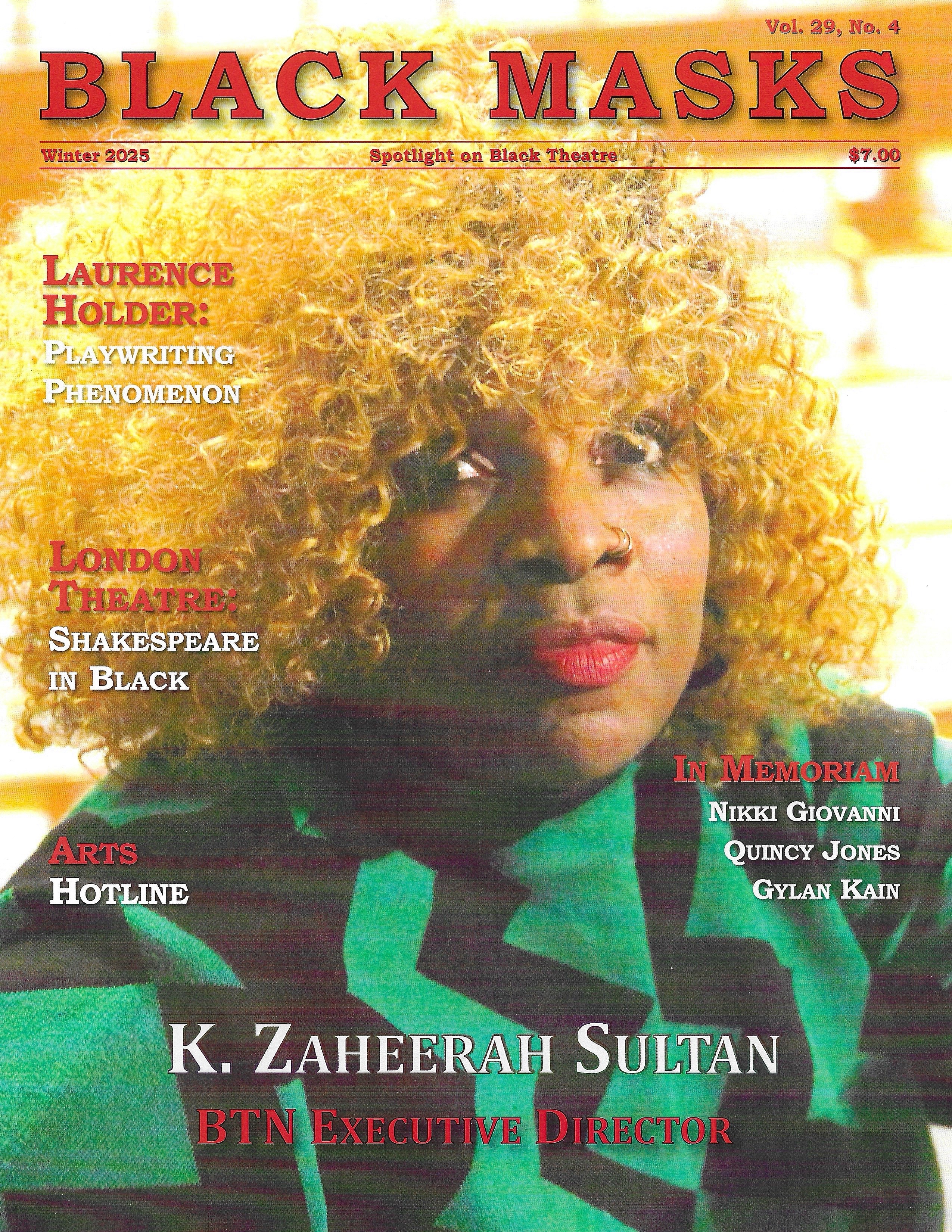 Black Masks is a long-established Black theatre and entertainment magazine. Created in 1984, this publication has gained the support of both Black theater and entertainment practitioners and audiences. The founder and publishing editor is playwright Beth Turner. At the end of its 41st year of publication, Black Masks will cease publishing with the Winter 2026 commemorative issue. We leave behind a treasure trove of articles in tribute to the many theatre artists, practitioners and audience members who have created and sustained this unforgettable legacy of excellence in Black theatre. In the course of its 40 years of publishing Black Masks has had subscribers throughout the U.S., in Canada and in the Caribbean, and occasionally in Europe and Africa. It started out as a monthly publication, but in the last decade, it has been published quarterly. The magazine has featured articles on Black performing artists and Black arts groups, and overviews of important Black theatre and entertainment issues. Each edition also carries comprehensive listings of current U.S. and occasionally international Black theatre and entertainment events. The articles in Black Masks are based on original interviews and research. Print subscriptions for the Autumn and Winter issues may still be purchased for only $15. Electronic subscriptions are $10. See more options under Subscribe Now. Autumn 2025Dunbar Repertory Theatre: Thriving Beyond New York City's GlowBorn, raised, and educated in New Jersey, Darrell Lawrence Willis Sr. has forged a New Jersey theatre company that has endured for thirty-eight years and is now thriving in its Middletown Arts Center theatre, some fifty miles from the New York City theatre scene. Summer 2025Tonya Pinkins: Gusto, Resilience, PerseveranceAs evidenced by her outstanding performances in Jelly's Last Jam, and Caroline, or Change on Broadway, and Hurt Village and Milk Like Sugar Off-Broadway,Tonya Pinkins overcomes her life's challenges to bring her full self and talent to her work, providing her audiences with transformative theatrical experiences. Spring 2025Theatre in His Bones: Wren T. BrownMulti-hyphenate Wren T. Brown, an actor, director, and artistic director of Ebony Repertory Theatre (the only Black Equity company in Los Angeles), adds nonfiction writer to his credits with the publication of his book about his family's four-generation legacy in entertainment. Winter 2025K. Zaheerah Sultan: Black Theatre PathfinderBlack Theatre Network's first executive director, K. Zaheerah Sultan, has brought many years of community organization experience and arts advocacy expertise to the service of this premier Black theatre organization. |